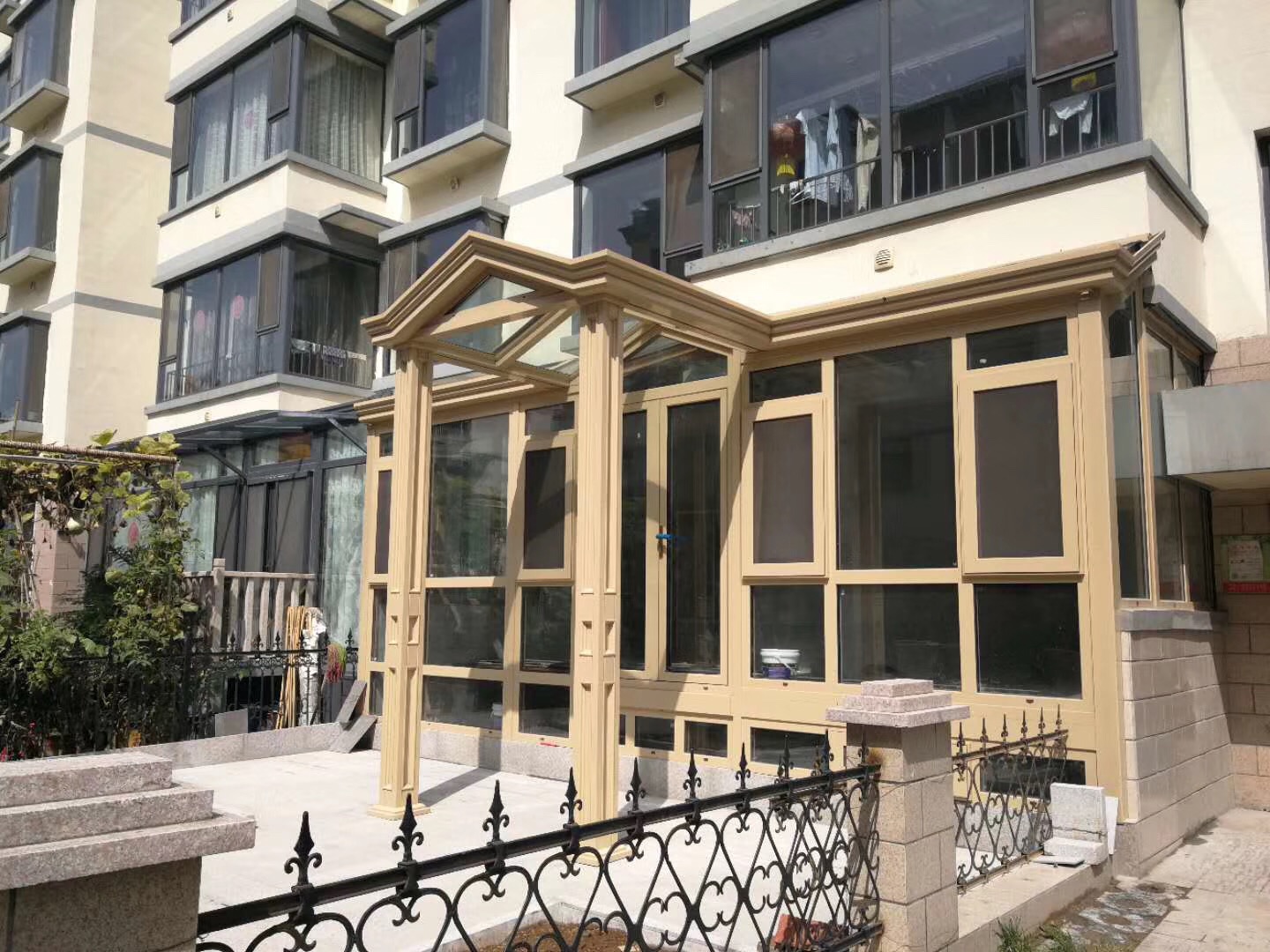 Canopy is a kind of building assembly which is set up on the top of the balcony or the entrance of the building to prevent rain, wind, and falling objects.